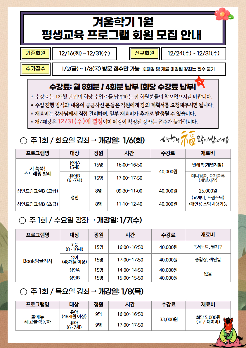 ※ 1월 겨울학기 평생교육 프로그램 회원 모집 ※