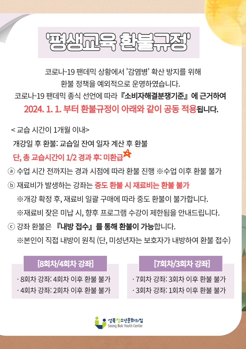 ⓓ 재료비는 중도 환불이 불가하며, 잦은 미납 시 프로그램 이용이 제한됩니다.