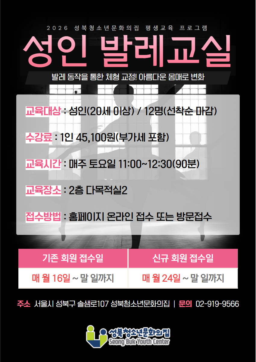 ○ 첫 번째! - 기본 발레 동작을 통하여 체형을 교정하고 예쁜 몸매로 가꾸어줄 수 있는 성인 발레 수업!