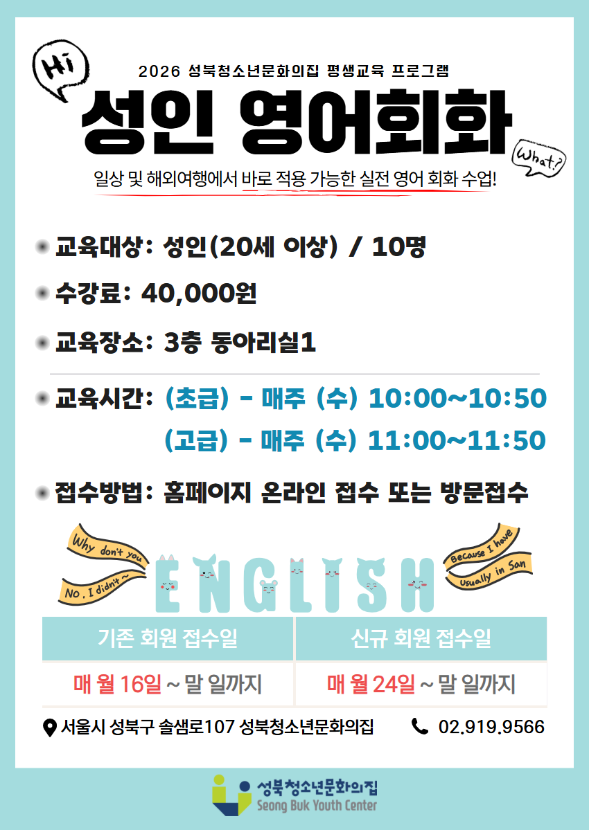 신규 강좌는 3월 평생교육 프로그램 모집 기간부터 접수가 가능하며, 기존 접수 기간인 2월 16일(월) 부터 접수가 가능합니다.