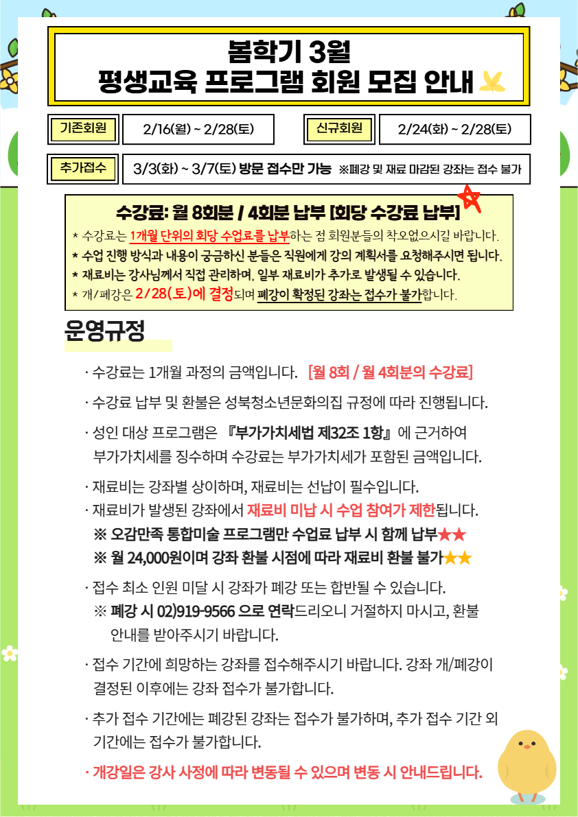 ※ 3월 봄학기 평생교육 프로그램 회원 모집 ※