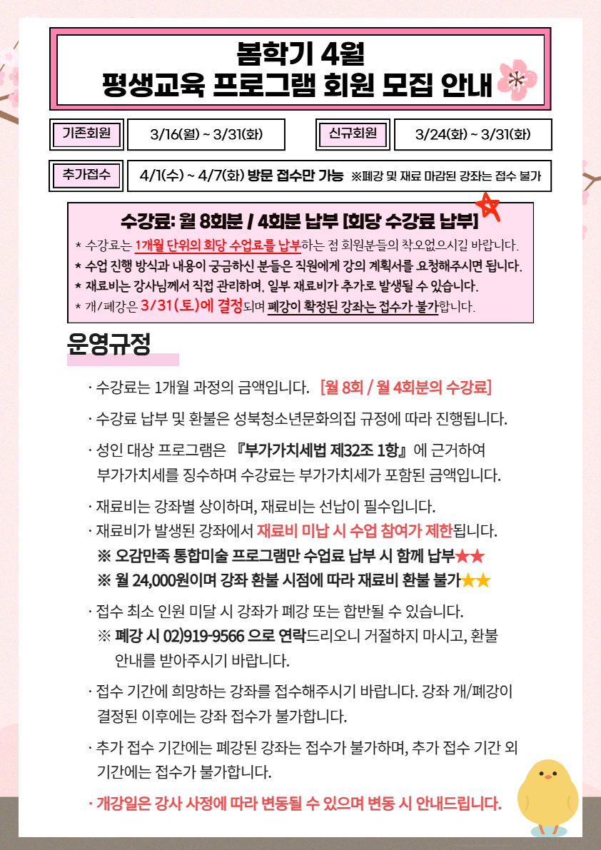 ※ 4월 봄학기 평생교육 프로그램 회원 모집 ※